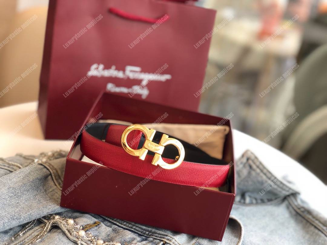 Salvatore Ferragamo Sized Gancini Belt Red / Black