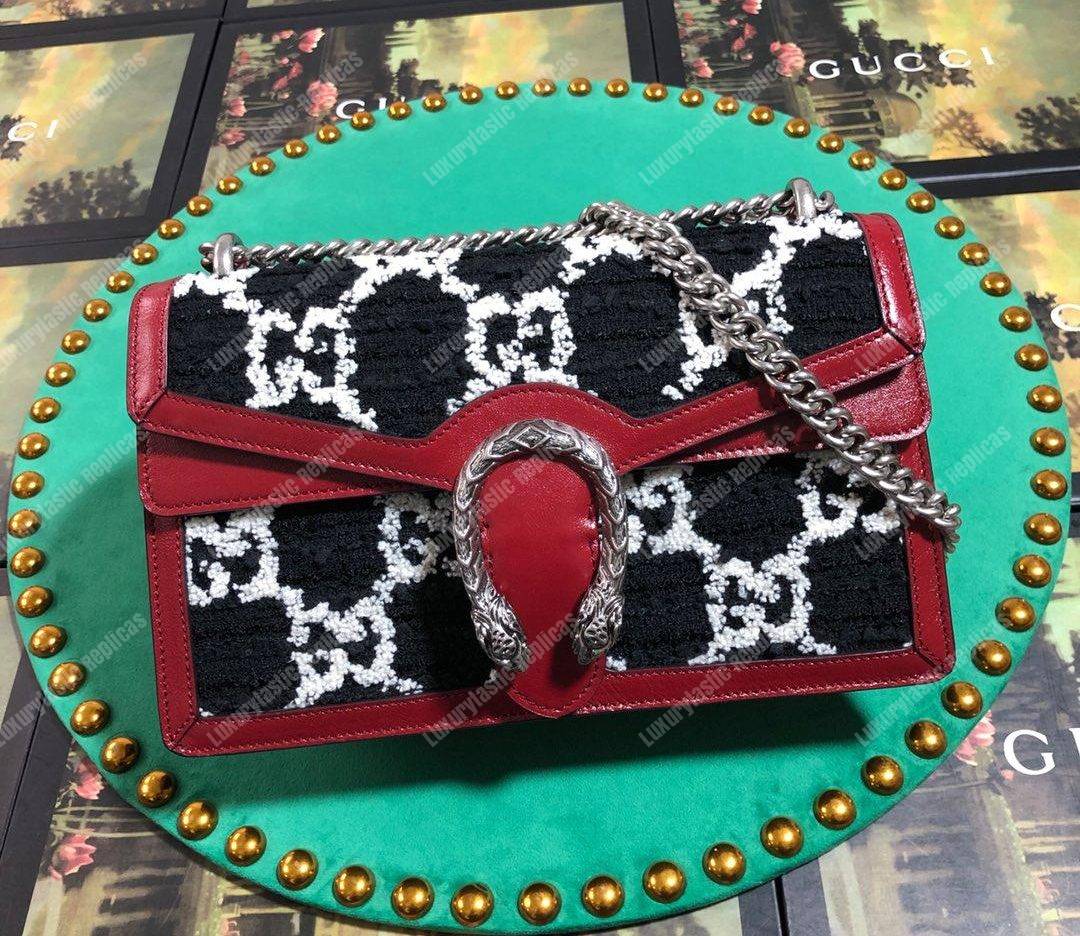 G*u*i dionysus gg tweed small shoulder bag black/white