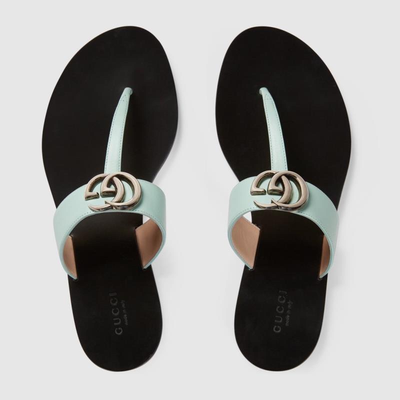 G*u*i leather thong sandal with double g turquoise 497444