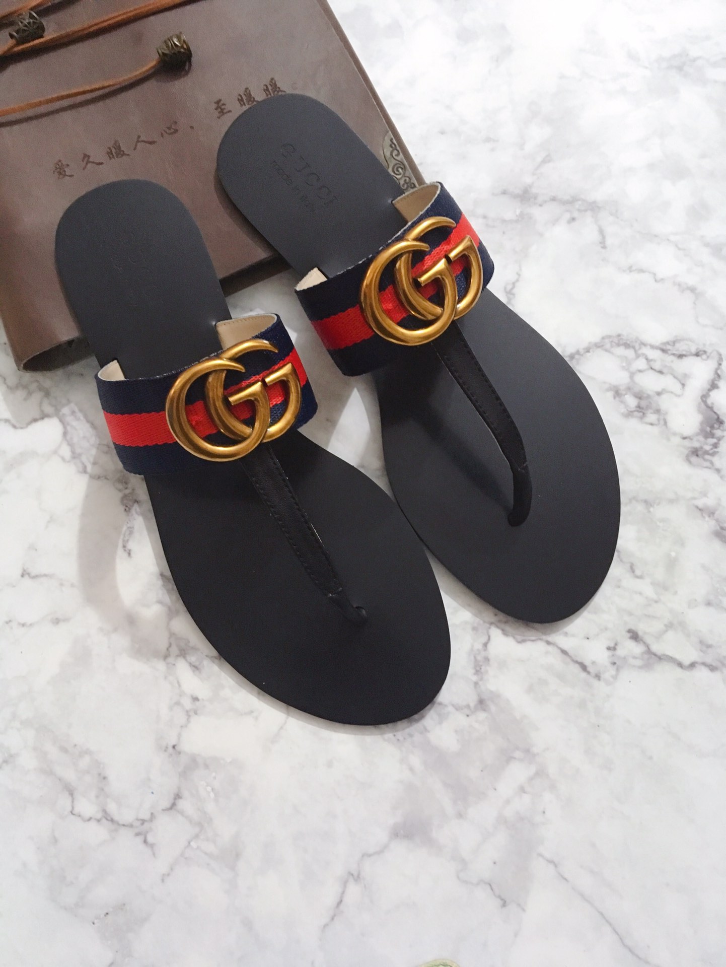 G*u*i marmont leather sandal red and blue 612138