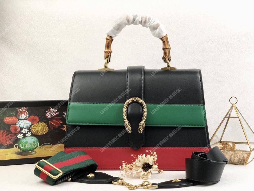 G*u*i dionysus large smooth leather bamboo top handle bag blue/green/red