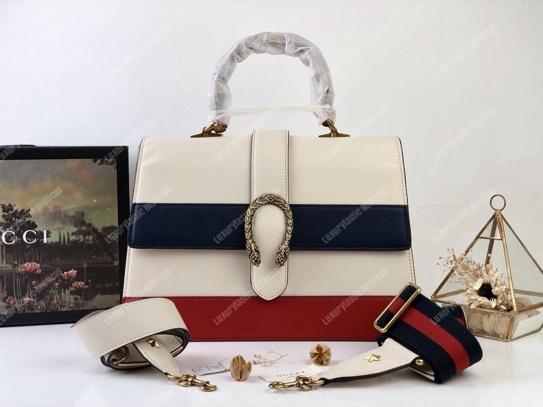 G*u*i dionysus large smooth leather bamboo top handle bag blue/green/red