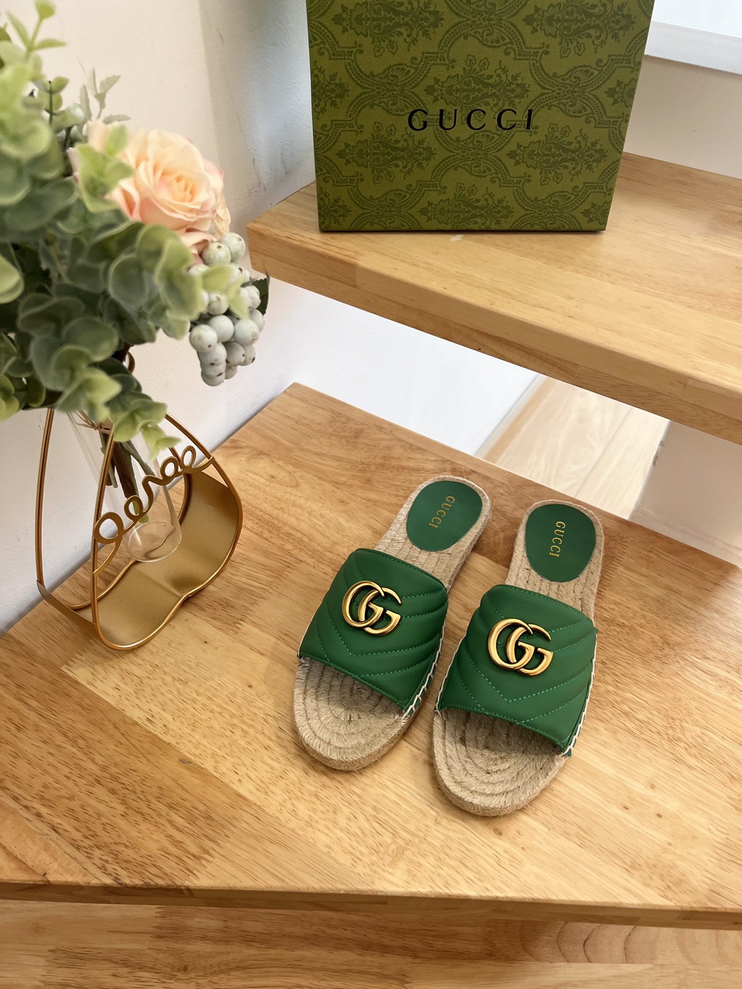 G*u*i pilar gg matelasse slide green 646169
