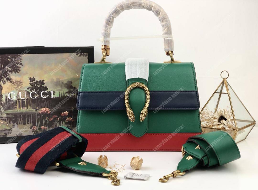 G*u*i dionysus medium smooth leather bamboo top handle bag green/blue/red