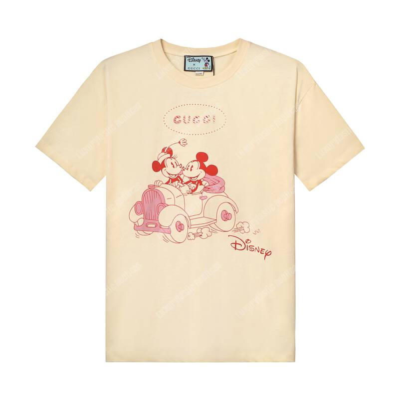 G*u*i cotton t-shirt mickey and minnie print beige