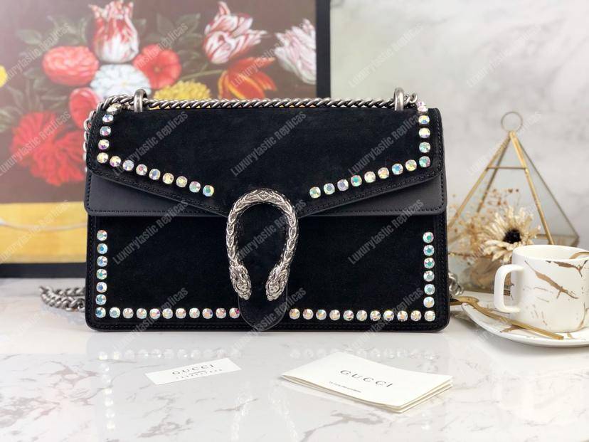 G*u*i calfskin garden dionysus chain wallet black with butterfly