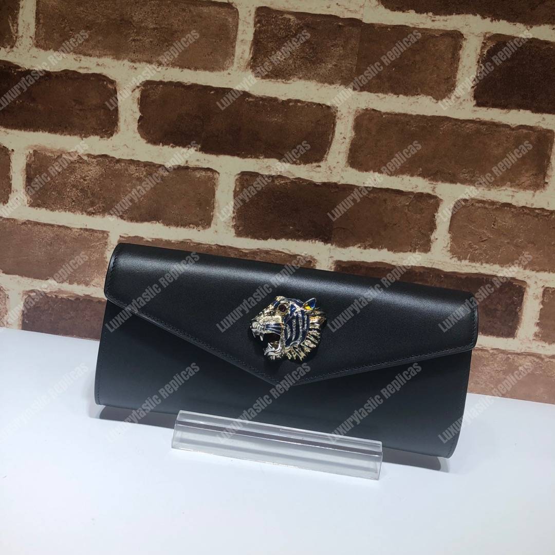 G*u*i calfskin garden dionysus chain wallet black with bat