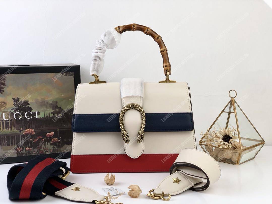 G*u*i dionysus medium smooth leather bamboo top handle bag white/blue/red
