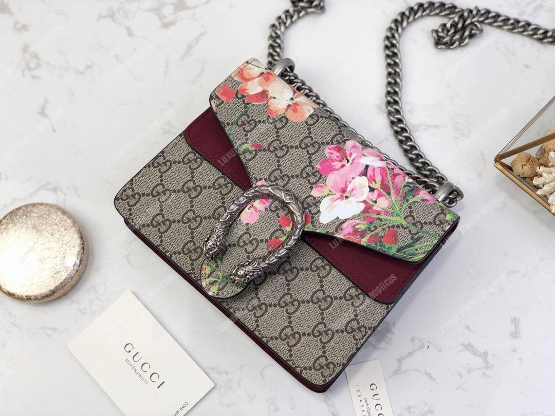 G*u*i blooms dionysus gg sup*e mini bag beige burgundy
